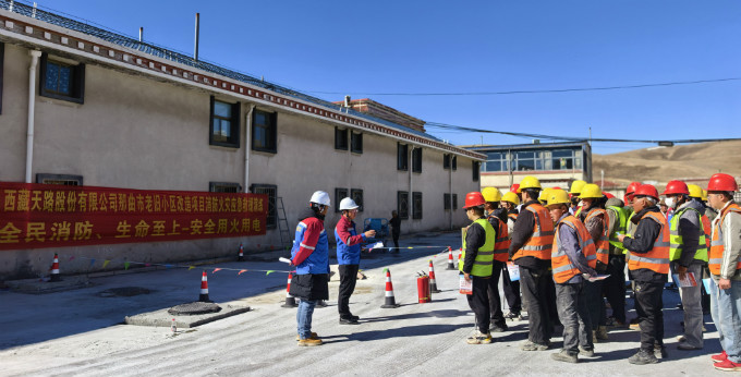 2025年11月9日是全国第34个消防日,为深入践行“全民消防、生命至上——安全用火用电”核心主题,切实强化项目部管理人员、施工班组及小区居民的消防安全红线意识,全面提升应急处置能力,那曲市老旧小区改造项目部以消防日为契机,在团结小区老旧小区改造施工现场组织开展消防演练活动。